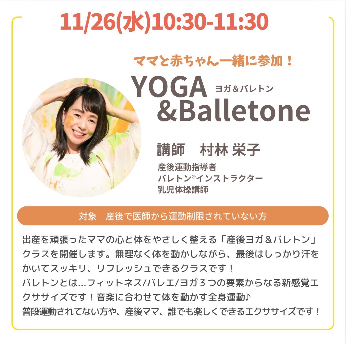 出産を頑張ったママの心と体をやさしく整える「産後ヨガ&バレトン」クラスを開催します。